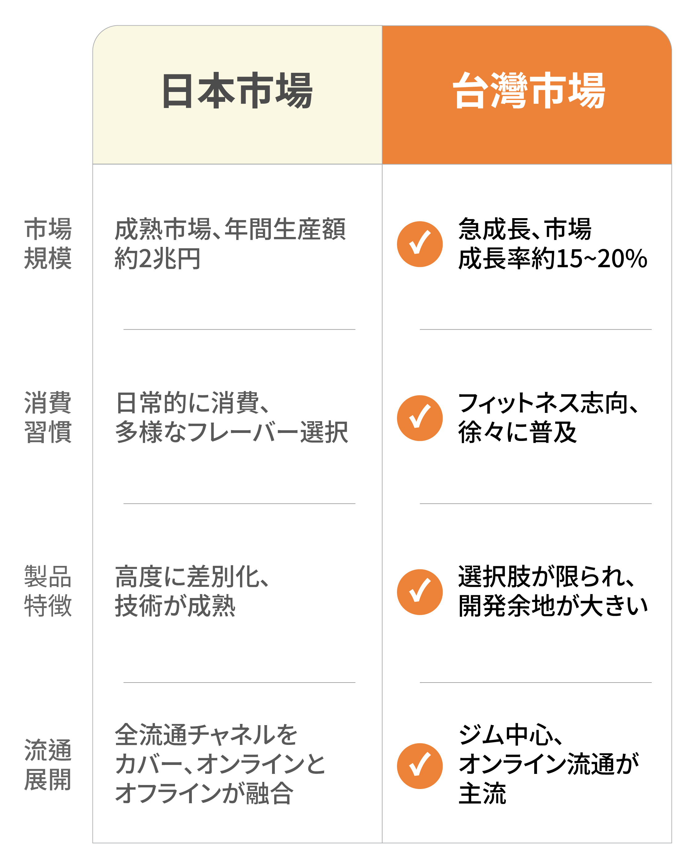 台湾市場は、まさに日本がたどったような成長軌道の初期段階にあります。 今こそ、先行参入によるブランド確立の好機です。
